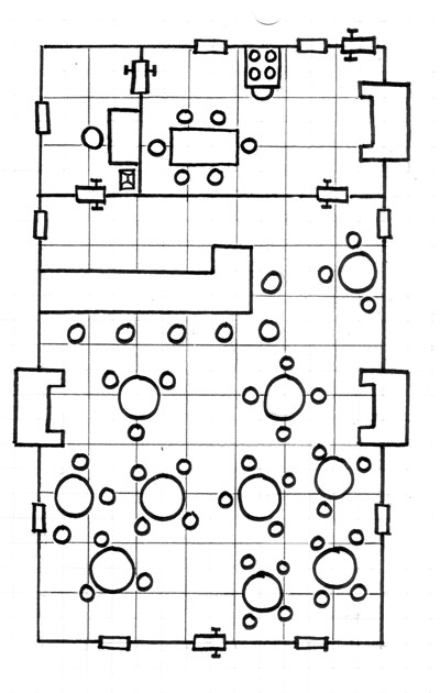 Adjacent to the kitchen is a private office where Duncan sorts out the receipts, invoices and other business related correspondence. A small, locked chest (Open Lock DC 20) can be found under his desk. It contains the tavern’s treasury (75 gp, 60 sp and 125 cp), as well as important paperwork, such as the title to the tavern and tax records.