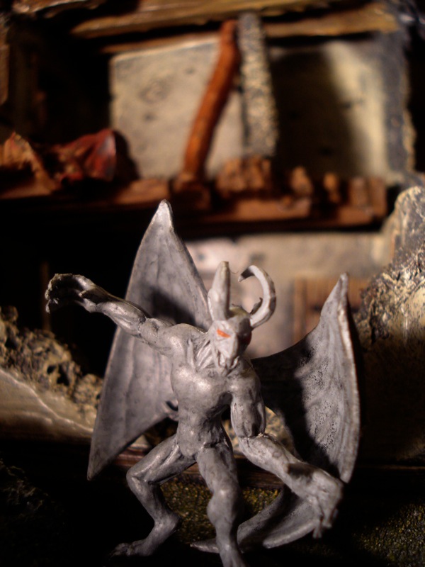 All he can see is a a terrified young man holding a lantern and a massive set of wings attached to something large and black. The wings are beating like mad and the lad is screaming, “Bats! Aiiieee!” Please see page 15 of the Monstrous Manual for details of the Large Bat.